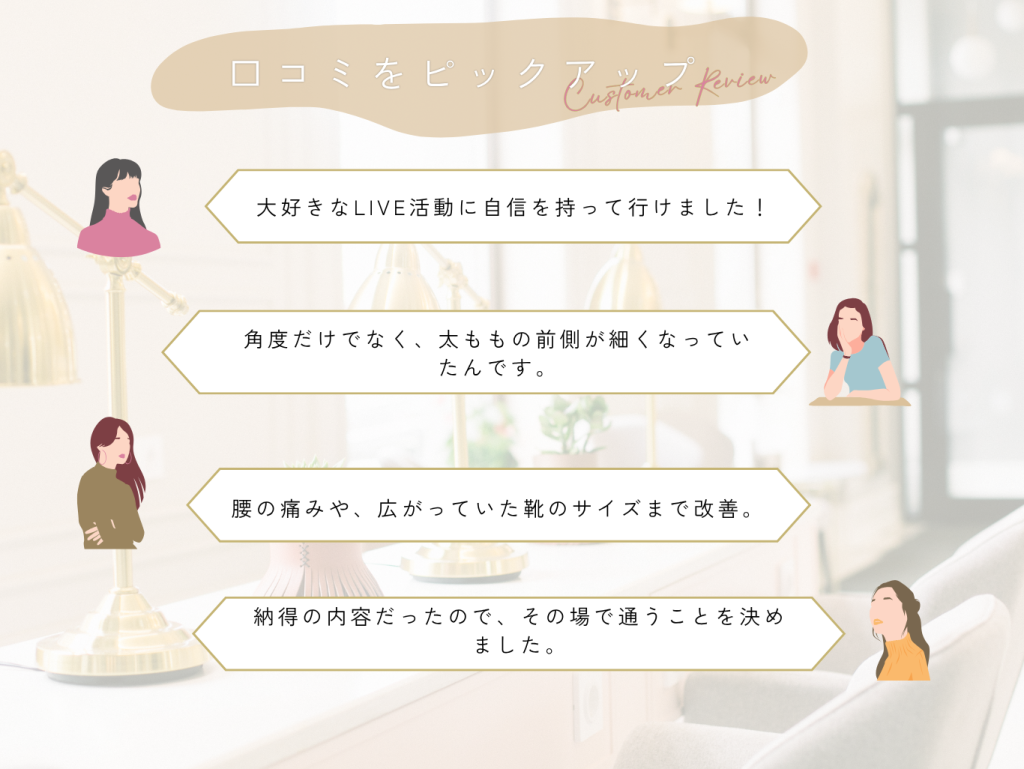 また「わたしのは長年の根深いものだし」「高齢だけど…」など、様々な要因で改善に不安を感じてしまうのも無理もないことです。 なのでまずはあなたの状態を各種測定などで洗い出し、それをもとに詳細に解説。