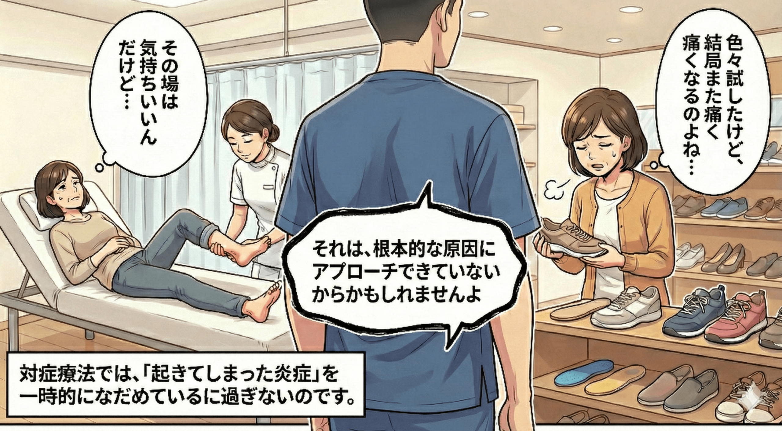 「インソールを作ったり、マッサージに通ったりしたけれど、結局また痛くなる」