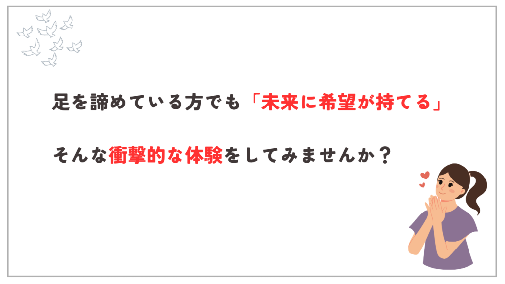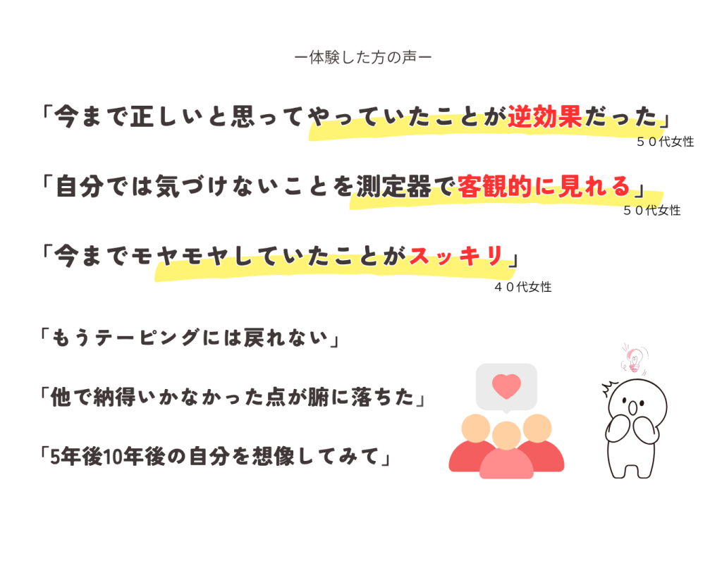 得られること: 自分の体がまだ変われるという小さな成功体験と、根本改善への希望が得られます。